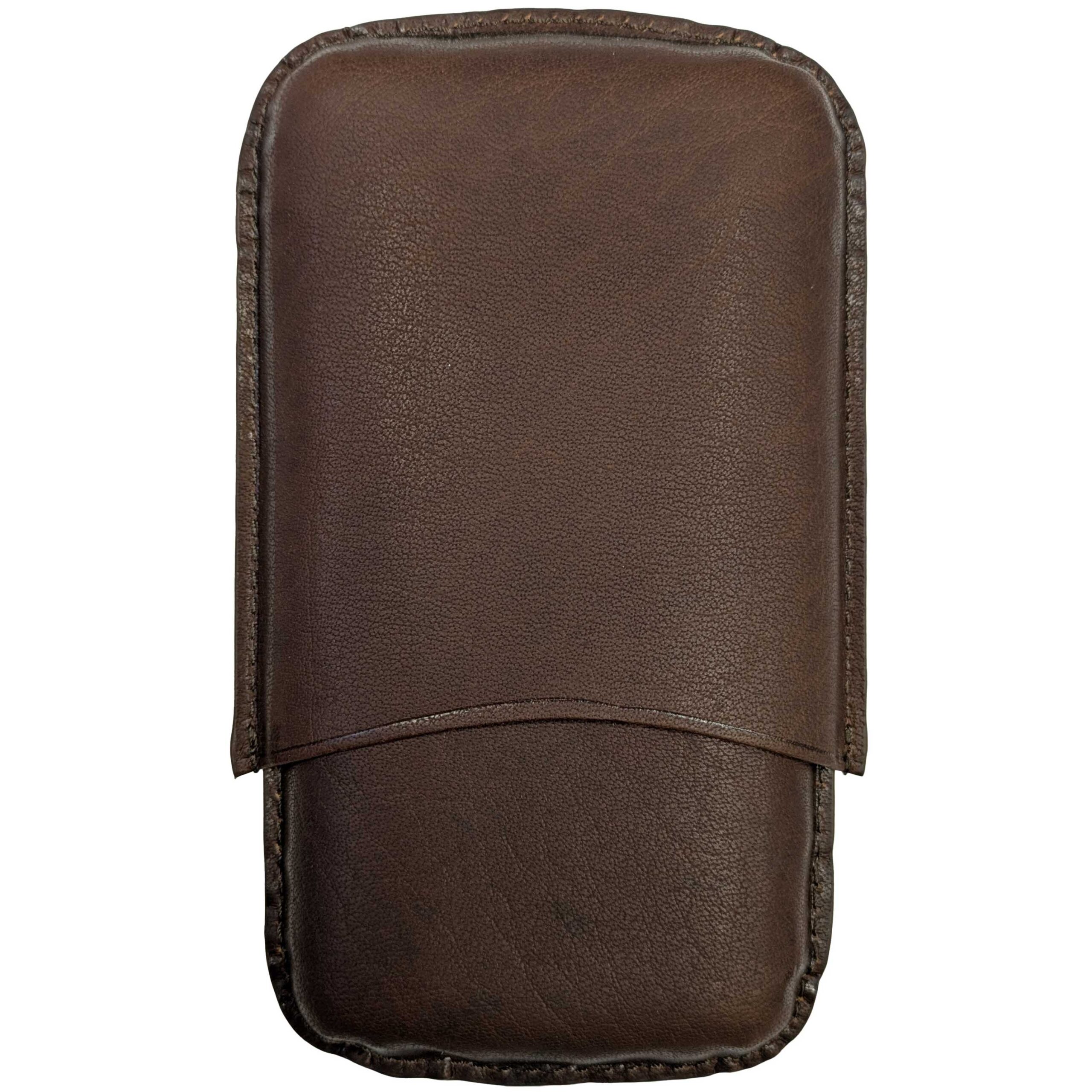 A stylish brown leather case that would comfortably hold 3 Robusto sized cigars. The case has a matt appearance with soft leather texture.
