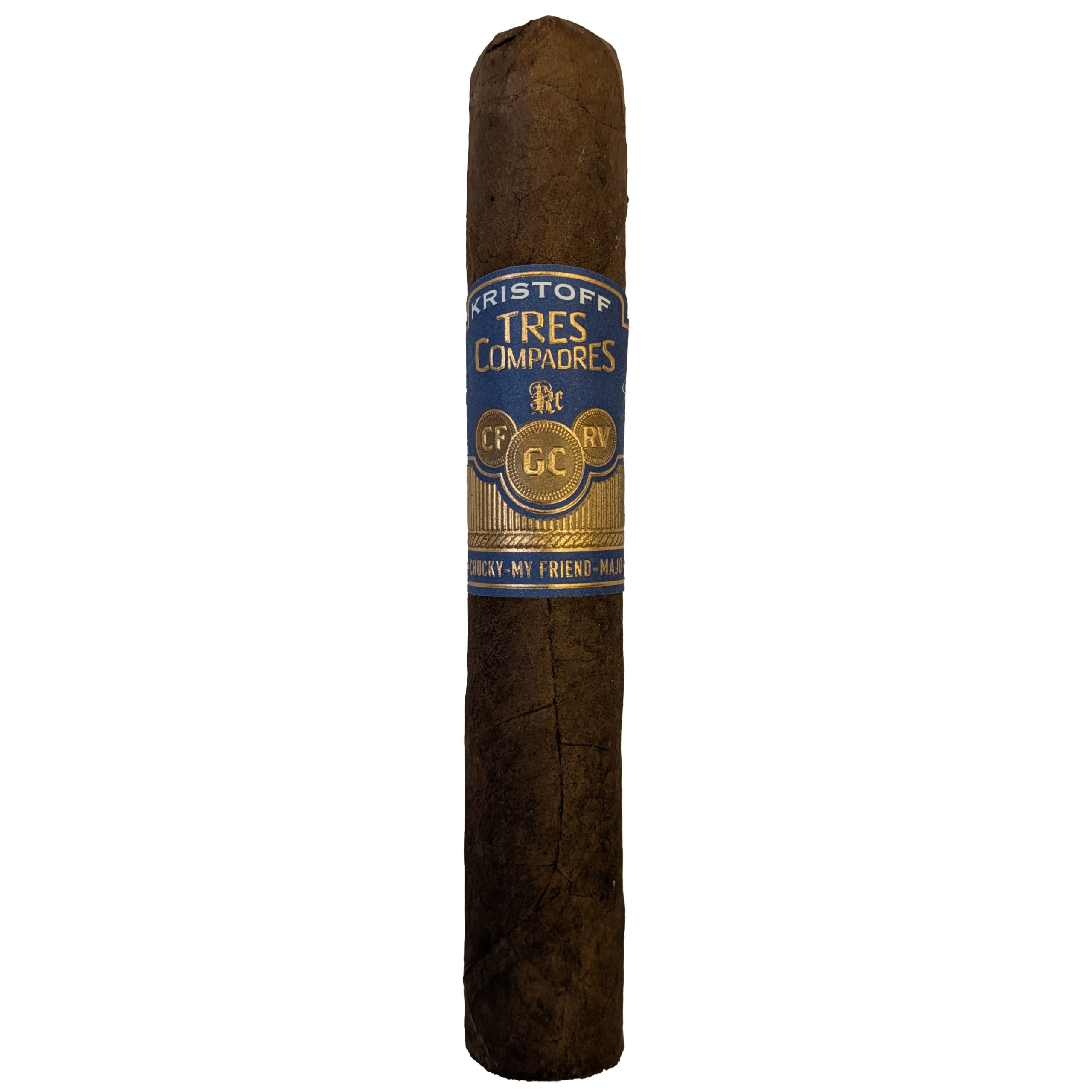 The Tres Compadre Robusto is a special tribute from Kristoff Cigars founder, Glen Case, to two late friends: Rolando Villamil, friend and mentor, and Chuck Finch, a dear friend since high school. Together, they are the Tres Compadres.